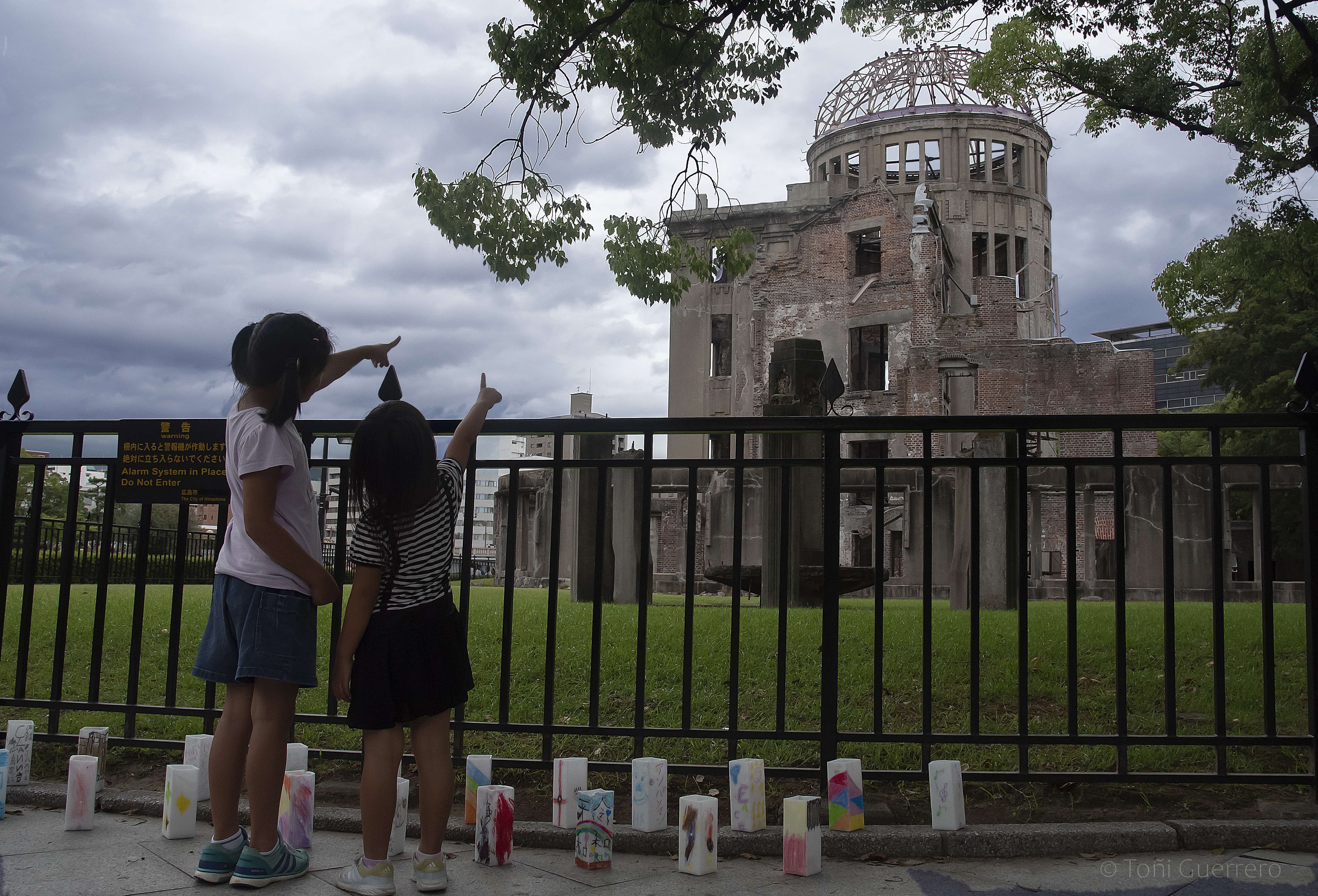 Niñas en la cúpula Genbaku en Hiroshima CF © Toñi Guerrero