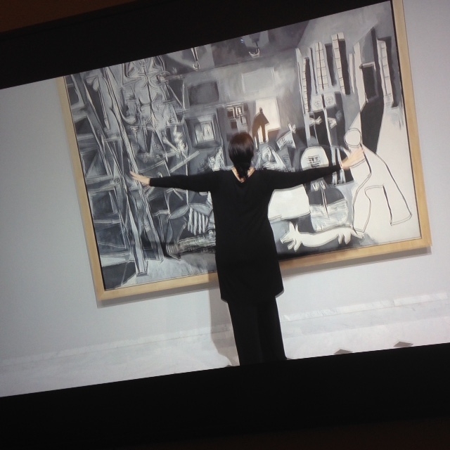 Y vaya si esta vez se cumplirían con creces las expectativas. Al día siguiente, a las seis de la tarde, fuimos convocados a las puertas del museo de la palaciega calle Moncada. No sabíamos qué era lo que íbamos a ver, solo que tenía que ver con Enrique Morente, el cantaor fallecido hace ya nueve largos años. Varios cámaras y fotógrafos nos rodean pacíficamente documentando nuestra lógica inquietud. Saludos y conversaciones apresuradas. Tras la firma de un documento de cesión de imagen, pudimos acceder por las escaleras de piedra al primer piso del museo. Chocante visión de las salas vacías de visitantes que duró unos minutos. Al poco, comenzamos a entrar en uno los espacios de la exposición permanente. Se nos pidió que, en silencio, nos colocásemos en fila corrida dando la espalda a las paredes, en las que se exhibe la serie Meninas que Picasso pintó en 1961, y mirando al interior de la sala.