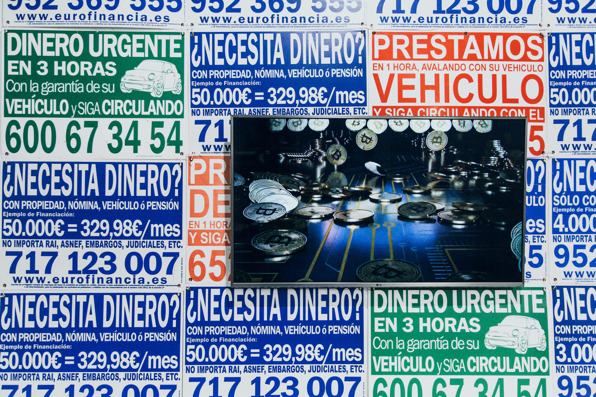 Finalmente, Jorge Isla presenta “Panorama” y “Billions in Bitcoins”; dos obras que toman como punto de partida un conjunto de mecanismos económicos de la sociedad contemporánea como son los préstamos fraudulentos y un tipo de moneda virtual. Mediante las obras se plantean, a través de la reinterpretación material, un conjunto de ecos de las estructuras políticas, sociales y económicas actuales desde una perspectiva basada en la apropiación de signos y significados de una determinada realidad.
