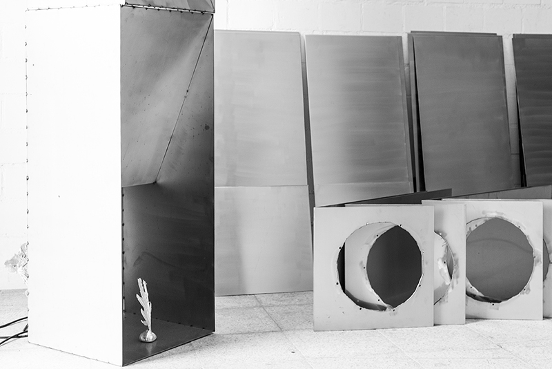 Su práctica explora las arquitecturas y materiales de este entorno, capturando vibraciones y amplificando sonidos que normalmente permanecen invisibles. A través de esculturas e instalaciones sonoras, convierte el ruido urbano en un lenguaje físico, táctil y resonante. No se trata solo de escuchar, sino de sentir cómo el tráfico y sus fuerzas se inscriben en los cuerpos y en el espacio.